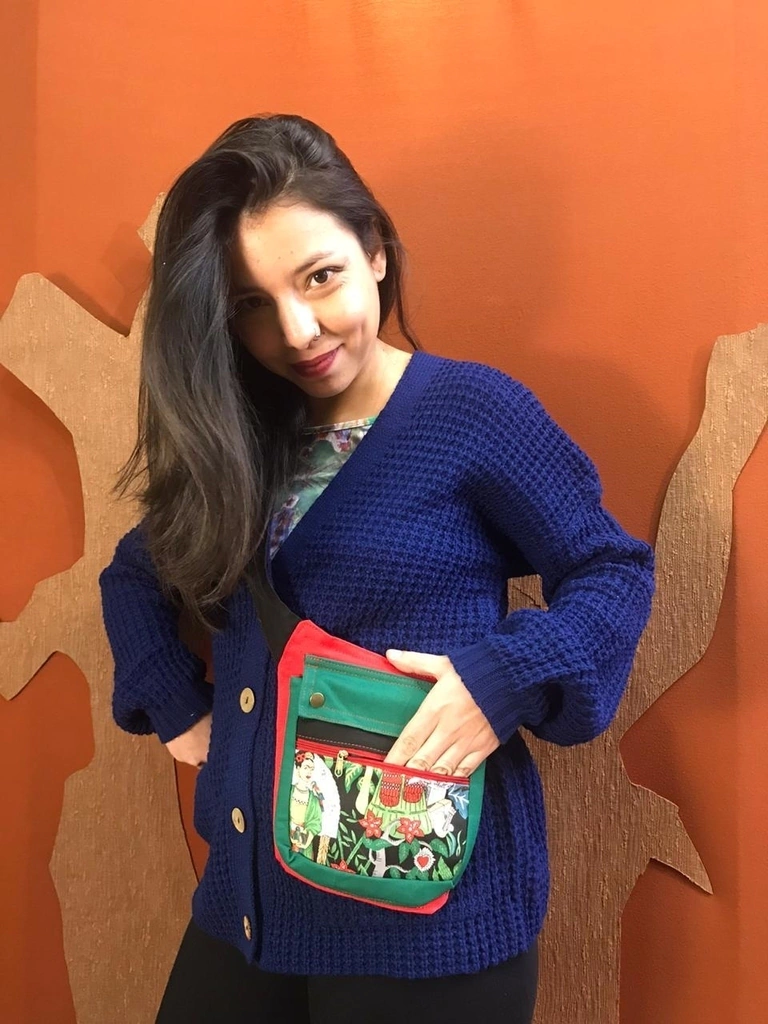 Alforja regulable con varios bolsillos en telas combinadas