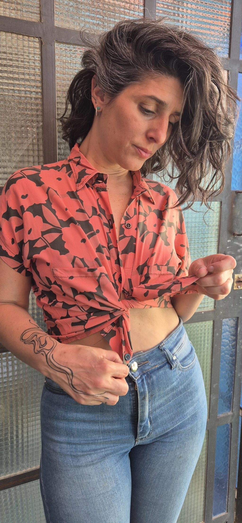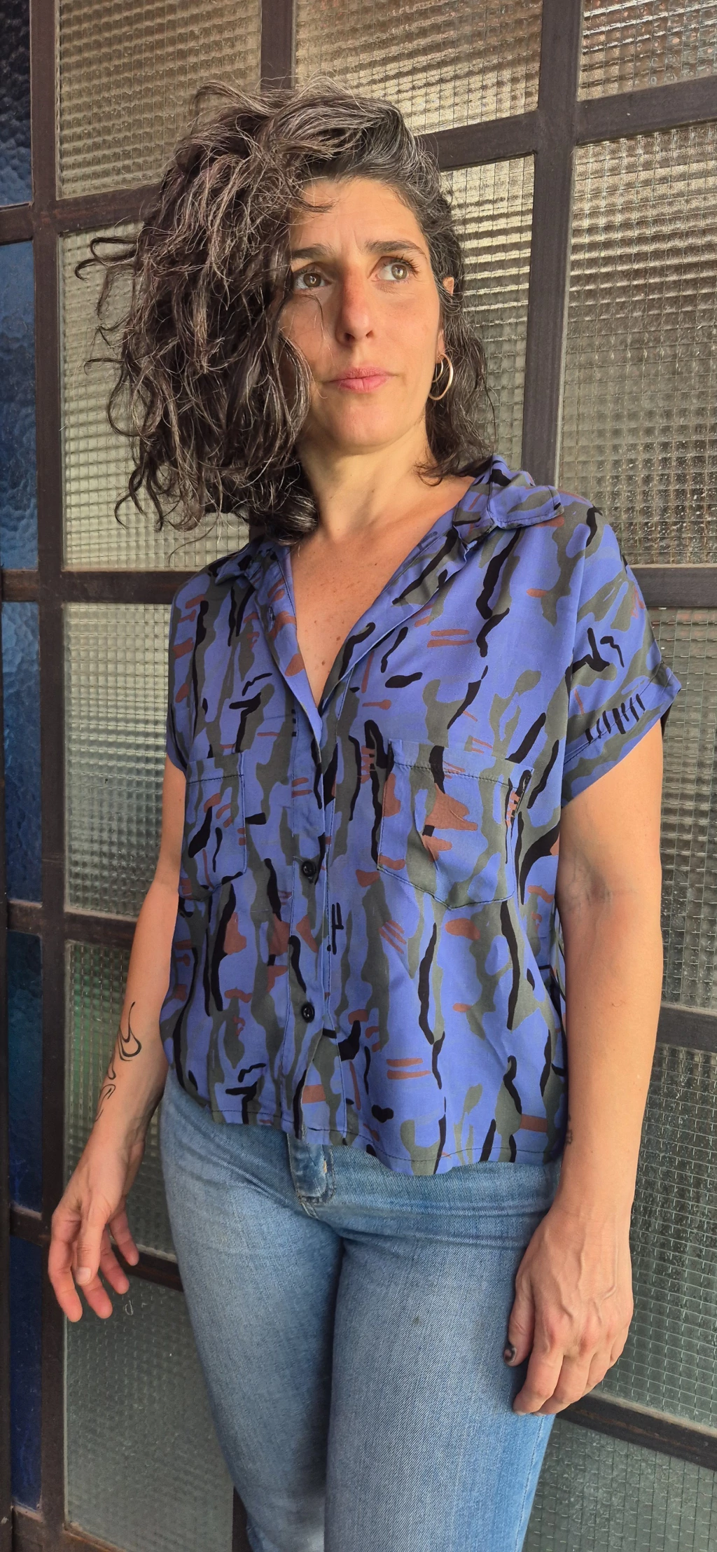 Camisa de fibrana 100% algodón,estampada, y botoncitos negros en el frente.