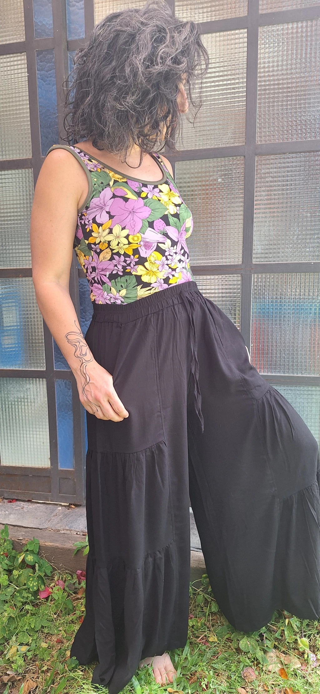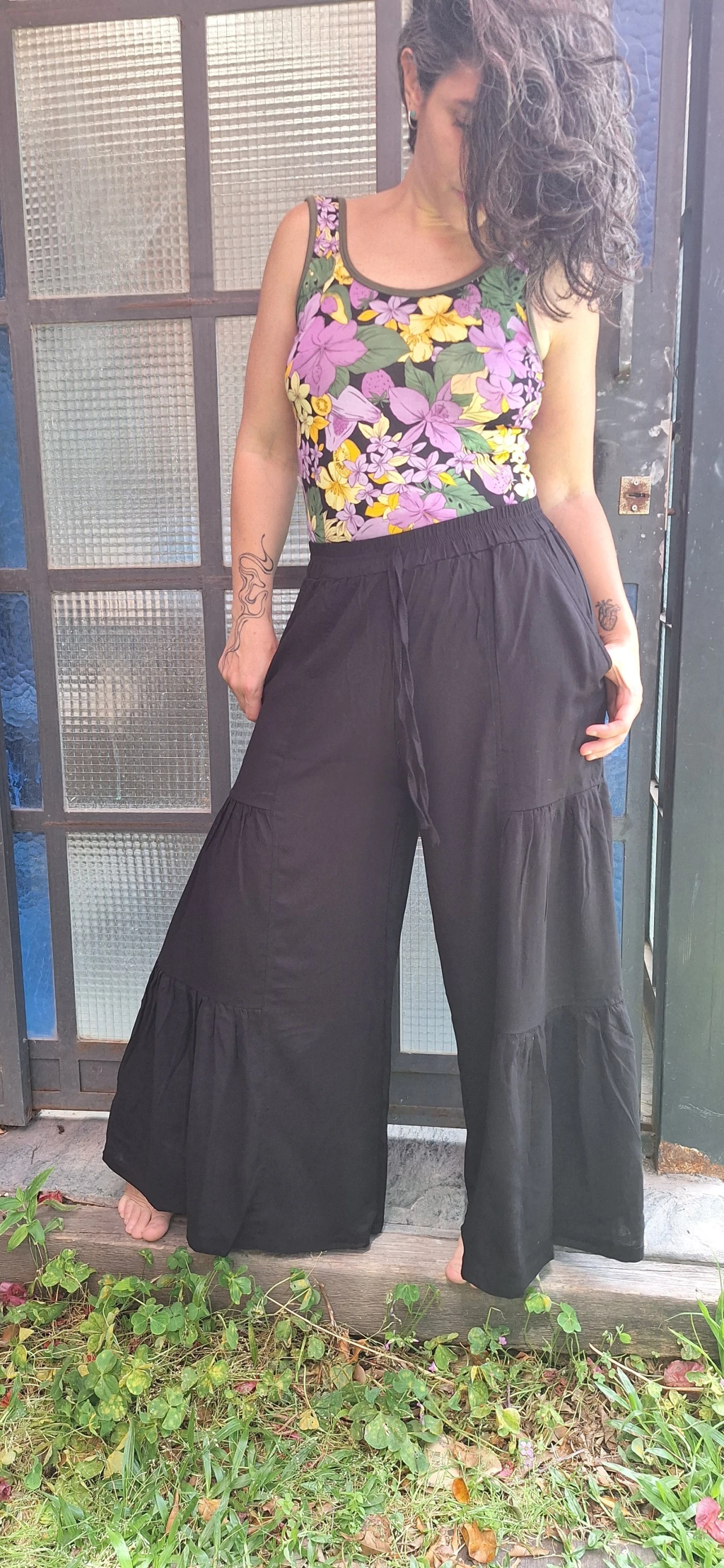 Palazo ancho símil lino solo negro, con Bolsillos.
