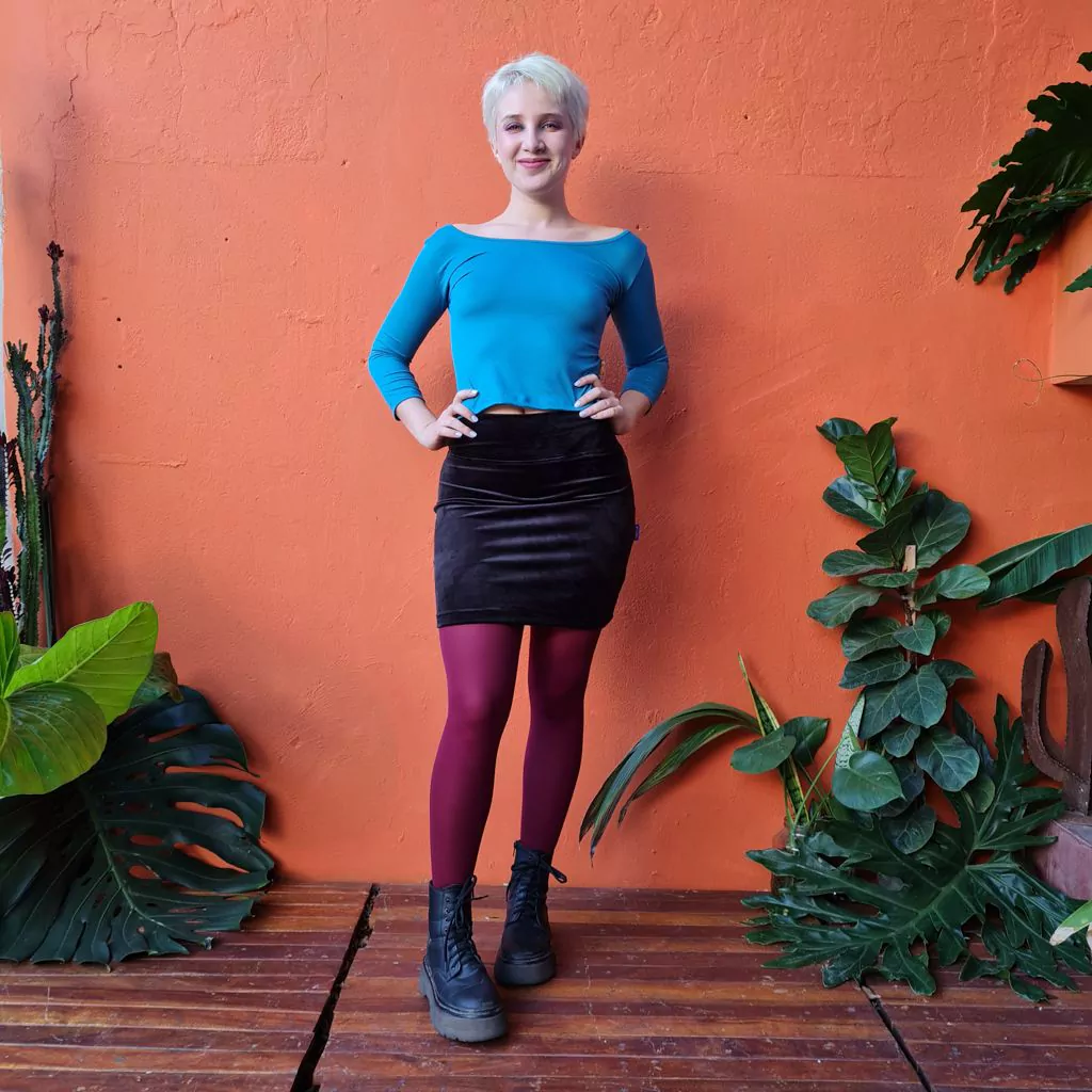 Queda lindo con medias y tambien con calzas!! Podes combinarla con partes de arriba cortitas (hace efecto vestido tubo) o con ropa suelta y cambia el look!