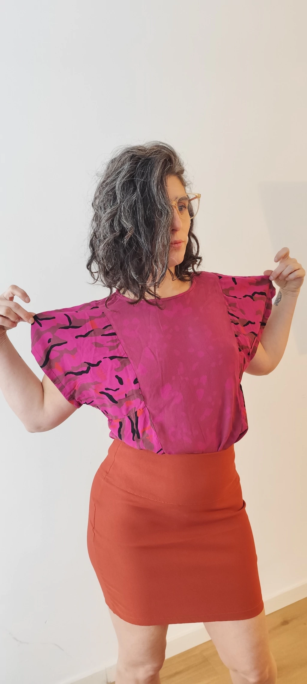 Remeron Cobinado Suspiro, con manga mariposa, siza abierta, hombros caidos.